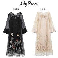インナー付 サテン ワンピース スーパーDEALポイント20倍 LILY BROWN リリーブラウン アフリカンフラワー刺繍 ラッキーシール対応 5400円以上購入で ショート その他
