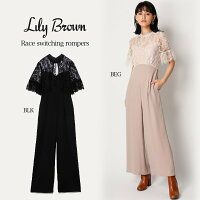 クーポン対象 LILY BROWN リリーブラウン レース切り替えロンパース lwfo195058 11月下旬予約 代金引換不可 2019秋冬予約 半袖 オールインワン