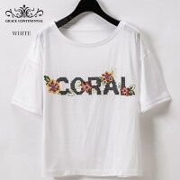 リヨセルとスーピマコットンの天竺生地を使用した、クロスステッチテクニックの入ったTシャツ。 しなやかで柔らかく、程よい光沢のある素材なので、綺麗な印象でご着用いただける大人仕様の一品。 胸元には3月の誕生石である「CORAL」(珊瑚)のロゴと、丸みのある花柄を、技術を必要とするクロスステッチテクニックで入れています。 インスタイルにも合わせやすい着丈バランスで、幅広いコーディネートで着合わせやすい万能アイテムです。 ■他にも■ 【GRACE CONTINENTAL】の商品一覧はコチラ 【トップス】アイテム一覧はコチラ