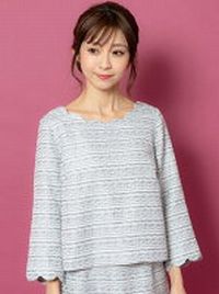 Rew de(ルゥデ)スカラカットトップス(9R13-01047)襟元がスカラカットになったトップスです♪同生地のスカートとコーデするのがおすすめです◎◎入園式や卒園式、入学式や卒業式などの式典やビジネスシーンでも活躍するマストハブアイテムです!! モデル身長:167 着用