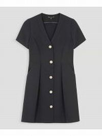 TARA JARMON(タラ ジャーモン)ツータックドレス IMPORTEDフロントのツータックがキュっとウエストを引き締め、膝上の短い丈やハーフスリーブが全体をコンパクトにまとめるドレスです。深く開いたVネックとゴールドのボタンが大人でスタイリッシュなイメージをプラス。品のある素材感が特別感のある装いにもまとめてくれるドレスです。 model:H170 B81 W59 H86 着用