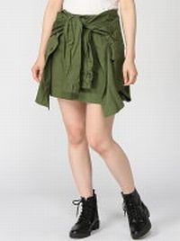 RNA(アールエヌエー)シャツライクラップスカート腰巻きシャツ風のスカートまるでミリタリーシャツを腰に巻いているかのようなリアルさにこだわったスカート。シャツ風のパーツの中に、独立したミニスカートが内蔵されており、着用時には2重になるので透けへの不安もありません。シャツを腰に巻いたときに出る特有の腰回りの横シワまで再現したこだわりの1着。スカートを着用した後に袖をフロントで結んでも上手く着用できますが、コツとして、1度、袖をぐっと上に持ち上げてから結んで頂くことで、よりリアルな雰囲気になります。透け感:なし伸縮性:なし裏地:なしポケット:ありウエストゴム:なし モデル身長:166 着用