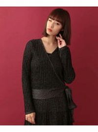 TARA JARMON(タラ ジャーモン)ラメ糸入りカシュクールニットラメ糸を織り込んだ華やかなカシュクールタイプのニットプルオーバー。立体的なリブ模様が表情感のある印象的なスタイリングを叶えます。ラメの柔らかく、身体を優しく包み込んでくれる風合いは女性らしいキレイなシルエットを叶えます。ウエストのリボンがアクセントに。ボリュームあるボトムやハイウエストボトムとの相性も抜群です。同ファブリックで仕立てた【VZHAG70490】とのセットアップもおすすめです。model:H164B82W59H88着用