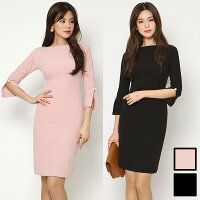 上品 ワンピース スリットスリーブ ポイントパール タイト ミディアム