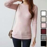 スタイリッシュ エレガント カットソー ラウンドネック シンプル リブニット 長袖