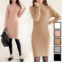 ハイネック リブニット タイトワンピース