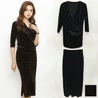カットソー おしゃれ シンプル カシュクール ベロア &スカート セットアップ レディースファッション ワンピース