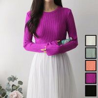 エレガント カジュアル カットソー 太リブニット ラウンドネック 長袖