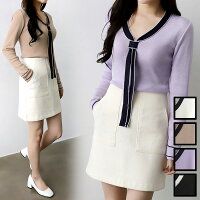 バイカラーの配色が目を惹くお洒落なタイ風カットソー! 広めに開いたネクタイ風のアレンジネックデザインでデコルテをすっきりと上品に演出します♪ 薄手のニット地は伸縮性抜群で着心地快適◎ お出かけやオフィスコーデにおススメの大人っぽい一着! モデルサイズ(165cm W63.5)