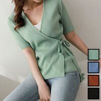カジュアル カットソー ウエストリボン ラップニット 半袖
