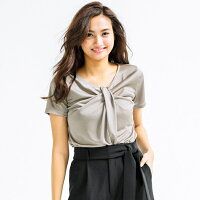 光沢 カットソー アウトレット Vタックドレープ半袖 /アールユー ru