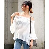 レース ふんわり ブラウス ジョーゼットプリーツオフショルトップス/アナップ ANAP 無地