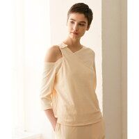 リブ/ワンショルダーレイヤードトップス/7分袖/ビジュリィ bijorie