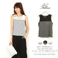 タンクトップ ホワイト 大人 レース×ボーダー切替 /フェリーニ fellini トップス