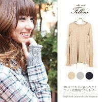 重ね着 あったか カットソー ニット切替指穴長袖 /フェリーニ fellini