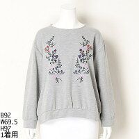 ソソ(大きいサイズ)の刺繍入りトレーナートレンドの花柄刺繍が施されたトレーナーです。シンプルなシルエットながらドロップショルダーになっているので、女性らしさ溢れる1枚です。フロントの刺繍があるので、いつものコーディネートに合わせると、ぐっと今っぽい雰囲気に。[型番:SOKAJ01079]■カラー:03グレー、45アイボリー1/バスト110・着丈61・二の腕幅21・ゆき丈76・袖口幅11・裾幅55cm2/バスト118・着丈64・二の腕幅23・ゆき丈80・袖口幅12・裾幅60cm【ヌード対応サイズ】バスト・身長1/(100?108)(154?162)2/(109?117)(154?162)※( )で表記されている数字はヌードサイズです。ヌードサイズとは衣服を身につけない身体のサイズです。お客様ご自身の身体サイズと比較してお選びください。 ■素材: 綿80% ポリエステル20% ■お手入: 手洗い・ドライ >>商品のお取り扱い方…