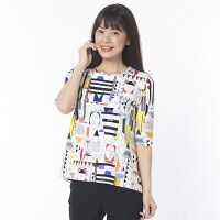 洗練された雰囲気 インポートプリント半袖カットソー/リリアンビューティ エクラ Liliane Burty ECLAT