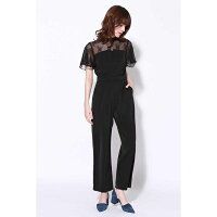 ブラック ワンピース シフォン×レースショートベアオールインワン/アナップ ANAP