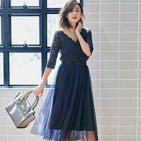 「大人の女性のための上品パーティードレス・ワンピース」ふんわり纏うだけで、女性らしさを引き立たせます。女子力を一気に引き上げるエレガントスカートドレス。【シルエット】・大人な上品シルエット。脚長・細見え・体型カバーになるようラインを重視したデザイン。動きのでる繊細なチュールを使用したスカートはフェミニンで優しい雰囲気。大きいサイズもご用意致しております。【ディティール】・チュールミモレ丈・ひざ下(膝下・ヒザ下)・ショート丈。甘めなチュールスカートもミモレ丈にすることで上品な印象に。脚長・細見え・体型カバーになるミモレ丈で女性のお悩み解決。・レーストップス抜け感のあるレーストップス。襟ぐりと裾はスカラップ仕様で柔らかな雰囲気に。レースの透け感で気になる二の腕もカバーしてくれます。・素材美しいシルエットを保つ高品質素材。ストレッチ入りのレース素材と繊細なチュールを使用。スカートには繊細で軽やかな生地を使用し、窮屈感のないトップス生地は柔らかく着心地抜群です。後ろのウエスト部分がゴムになってい…