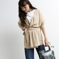 洗濯機で洗える ベルト付 トッパーカーディガン/オゾック OZOC
