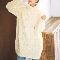 タートルネックケーブル編ニットチュニック/ジーラ バイ リュリュ ファッション GeeRA fashion