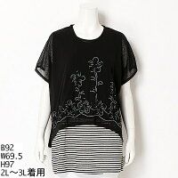 大きいサイズ 2L?3L 花刺繍アンサンブルカットソー/アミスインポータント Amis Important