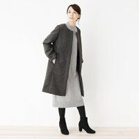 LLサイズあり SUPERプライス ノーカラーコート+ニットワンピースセット/ピンクアドベ pink adobe