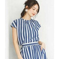 洗濯機で洗える ストライプ柄フレンチスリーブブラウス/MK ミッシェルクラン MK MICHEL KLEIN
