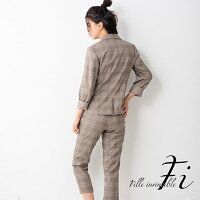 コンパクトジャケット×クロップドパンツスーツ オフィス カジュアル チェック M?LL /Fille invincible ラブリークィーン