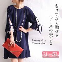 リボン付きレース袖ワンピース/ゴールドジャパン 大きいサイズ GOLDJAPAN