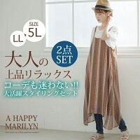 半袖Tシャツ×エスニックプリントキャミワンピースセットアップ/ハッピーマリリン 大きいサイズ AHAPPYMARILYN