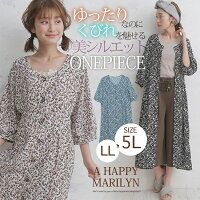 前後2WAY 小花柄プリント ギャザースリーブ 五分袖 vネック ワンピース/ハッピーマリリン 大きいサイズ AHAPPYMARILYN