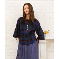 21号 6L - 大きいサイズ 袖ドロストビッグチェックブラウス/サブストリート 21号- sab street