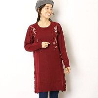 大きいサイズあり M-4L Rose Peche サイドレース刺繍ロングニットチュニック/ローズペッシュ ROSEPECHE