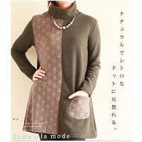 ドット模様がナチュラルなタートルチュニックトップス/サワアラモード sawa a la mode