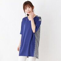 洗える ストライプ切替え 肩レースチュニックワンピース/サンカンシオン レディス 3can4on Ladies
