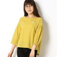 シャーリング プルオーバー ふさふさブローチ付きギャザー袖 ブラウス/ノースオブジェクト プチ... north object de petit… 無地