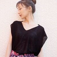 S-4L 洗える リネンタッチフレンチスリーブニットトップス/インシード INCEDE