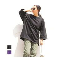 透け感 カットソー ビッグシルエットワイドスリーブスウェット オーバーサイズ 長袖 袖ロールアップ ステップドヘム /コカ coca