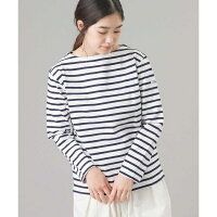 定番 大人 カットソー OMNES バスク生地 ボートネック長袖Tシャツ ボーダー/ハプティック レディス HAPTIC