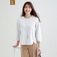 トランスワーク(L)(TRANS WORK(L))の【L】【ウォッシャブル】クアトロデンビブラウス。【L】【ウォッシャブル】クアトロデンビブラウスこちらの商品はラージサイズです。シンプルなシルエットの中にもディテールを散りばめたプルオーバーです。肩の切り替えラインをずらしたり、切込み部分をラウンド型にしたりときりっと見える素材感に丸みのディテールを持たせることで、優しい印象のブラウスに仕上げています。単品での着用はもちろん、同素材のパンツ(U3R17268)と合わせてセットアップで着用すればお出かけ着としても活躍します。4枚筬のトリコット機で編んだ素材で、程良いストレッチ性やハリコシが特徴です。また家庭で洗濯が可能な点も嬉しいポイントです。ラージサイズならではの悩みに応えるパターンメイキングで、すっきりと着て頂けます。■44サイズ→13号、46サイズ→15号が目安です。【着用推奨シーズン】秋?春モデル(下部ディテール画像):H 165 B 76 W 58 H 84 着用サイズ: …