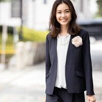 L ママスーツ入学式 スーツ卒業式 スーツマシンウォッシャブル ノーカラーVジャケット/インディヴィ INDIVI