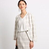 ジャケット ホワイト ノーカラー S ハンドウォッシュ ジャガードチェック /インディヴィ INDIVI スーツ セットアップ トップスのみ