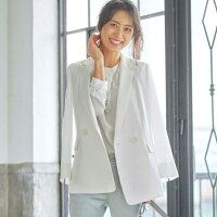 マシンウォッシュ リネン風ダブルボタンジャケット/インディヴィ INDIVI
