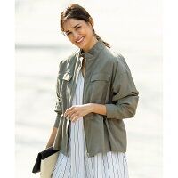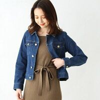 デニムジャケット 光沢 ノーカラー 洗える SS LL WEB限定サイズ ストレッチ /オペークドットクリップ OPAQUE.CLIP レディースファッション コート