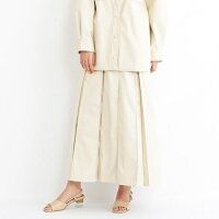 オゾックのエコレザースカート【デザイン】合皮仕立てのプリーツスカート。ピッチを広くとったプリーツとロングサイズ、フェイクレザーのクールさがあわさり、かっこよさ、潔さのあるプリーツスタイルが叶います。トップスはシンプルでも、ひとひねり感のある着こなしに。【生地感】ほの艶感とシボ加工の表面感をあわせもったフェイクレザー仕立て。ストレッチを効かせ生地もソフトに仕上げており、ツルンとゴワつかずに着用いただけます。裏は微起毛した暖かな仕上がり。[型番:P0478001]■カラー:アイボリー(004)、タバコブラウン(054)38(M):W:70cm H:96cm 総丈:90cm40(L):W:73cm H:99cm 総丈:93cm※( )で表記されている数字はヌードサイズです。ヌードサイズとは衣服を身につけない身体のサイズです。お客様ご自身の身体サイズと比較してお選びください。 ■素材: 表地:合成皮革 裏地:ポリエステル100% ■お手入: >…